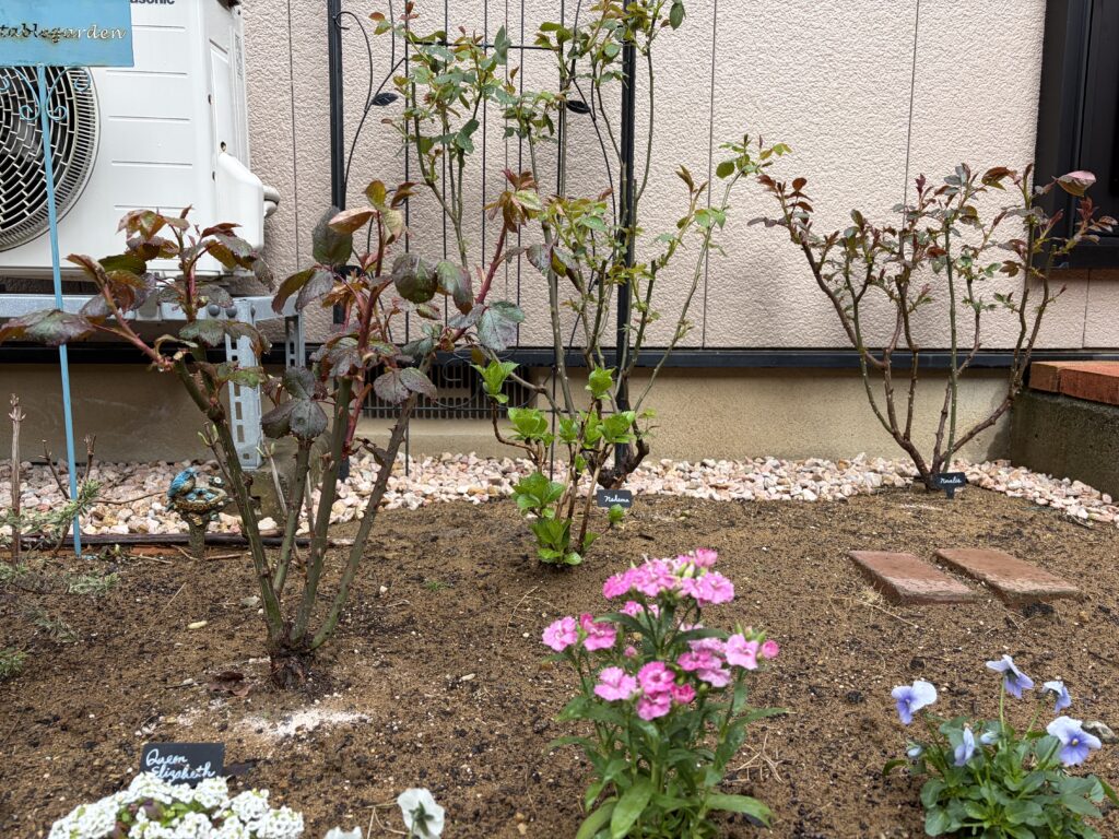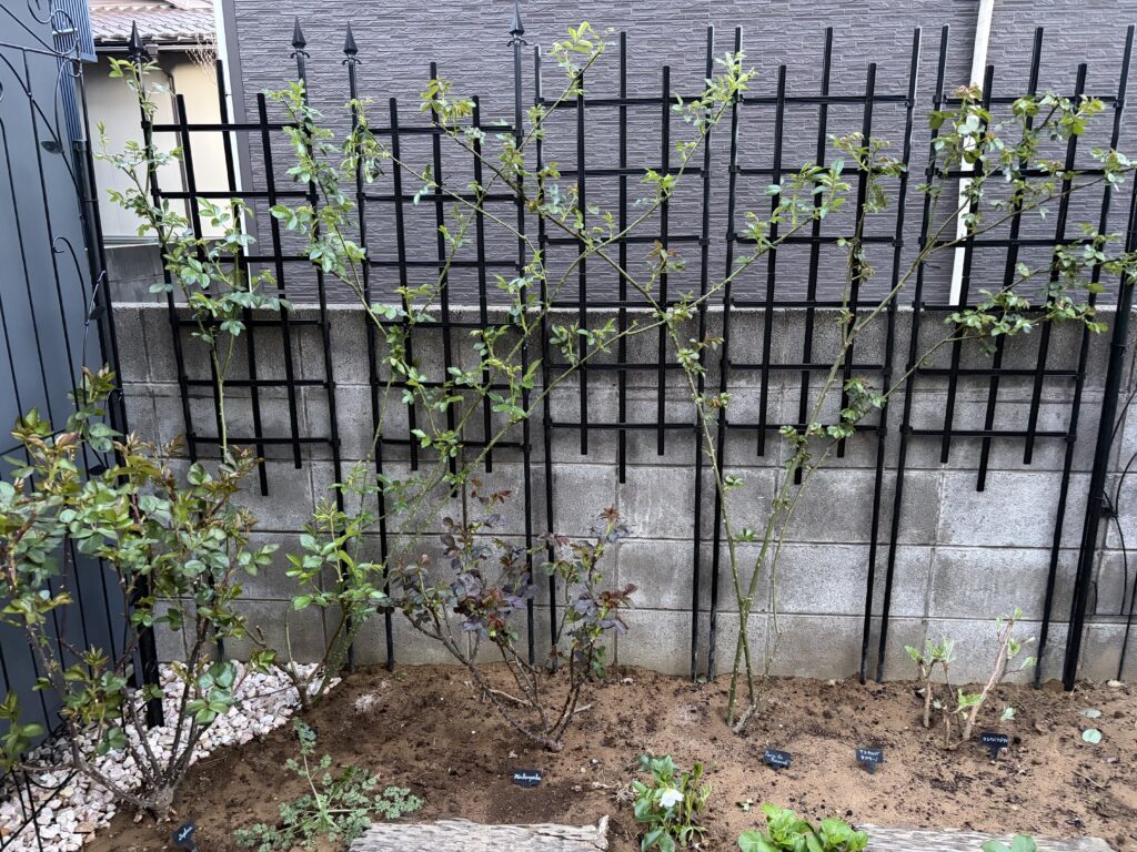 ダフネ・つるアイスバーグ・ピエールドロンサール。3時間あるかないかの日照で、どれだけ咲いてくれるかな。