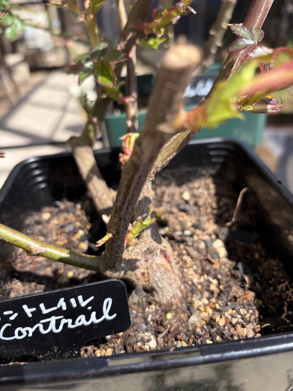 数日前に購入したコントレイル。伸びが悪い枝があるなあと思ってよく見たらアブラムシ!即退治。